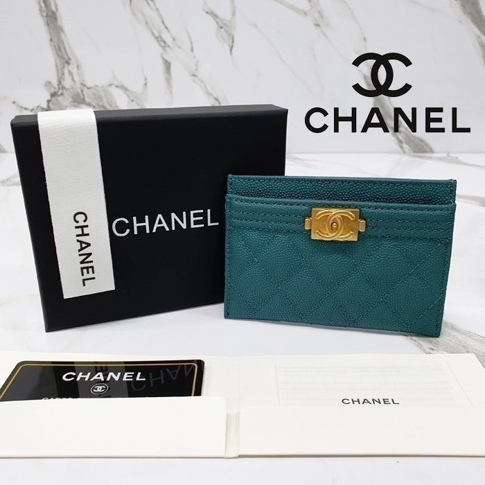 🔘색상 : 그린/금장 🔘사이즈 : W11cm x H8cm 🔘기타정보 : -여성용 카드지갑 -3포켓 -소재 캐비어 -본품+더스트+박스+개런티카드+책자 풀구성