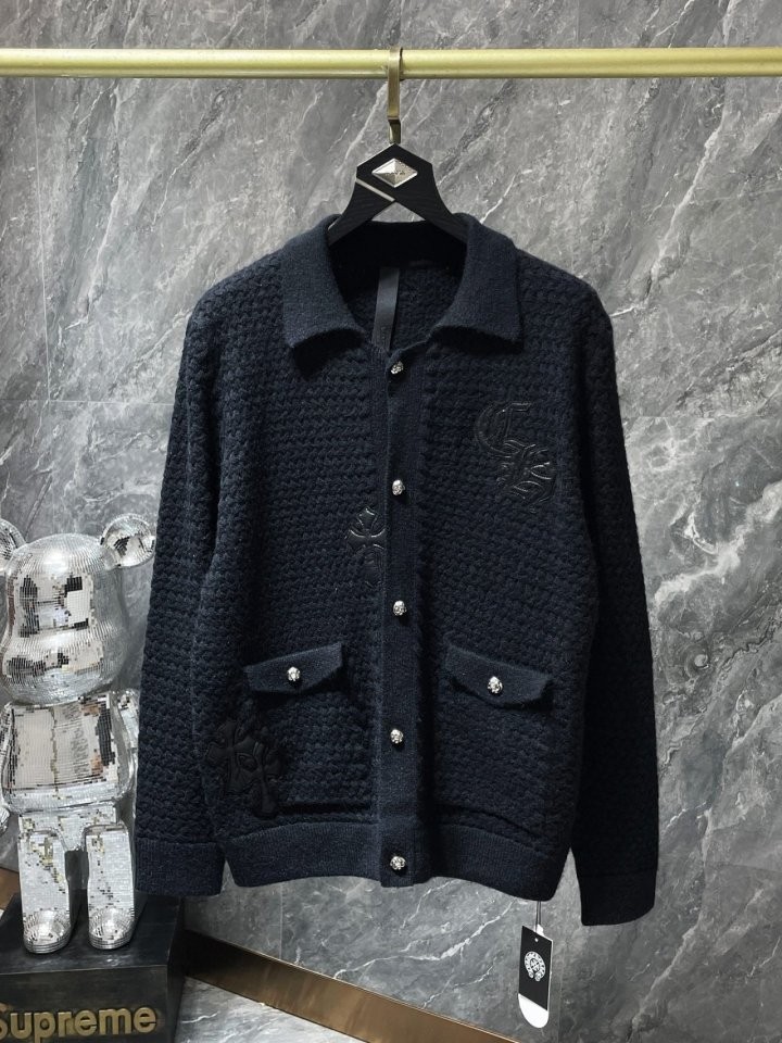 [국내배송]크롬하츠 가죽패치 버튼 카라 가디건