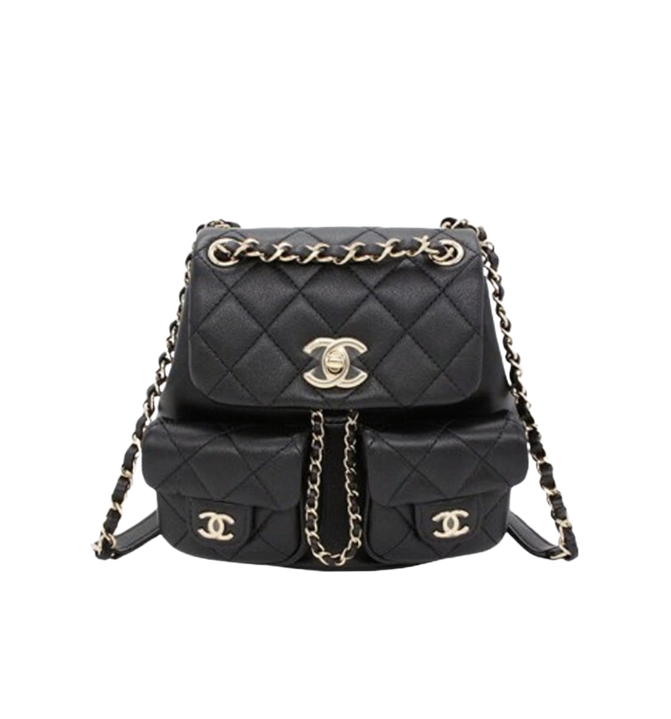 [프리미엄/해외배송]샤넬 듀마 백팩 더블포켓 스몰(블랙/금장/카프스킨)