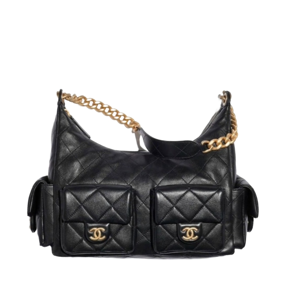 [프리미엄/해외배송]샤넬 크루즈 맥시 호보 백(블랙/금장/램스킨)
