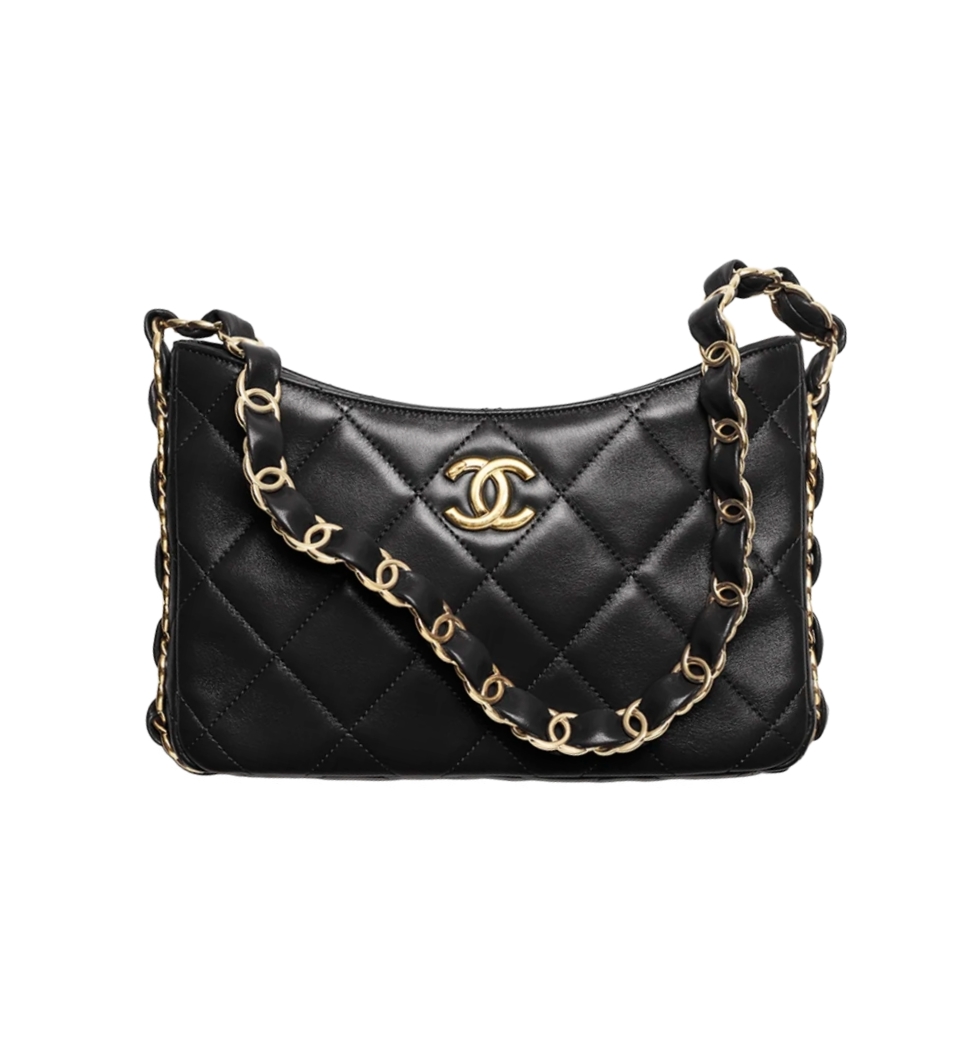 [프리미엄/해외배송]CC로고 체인 호보 핸드백(블랙/금장/램스킨)