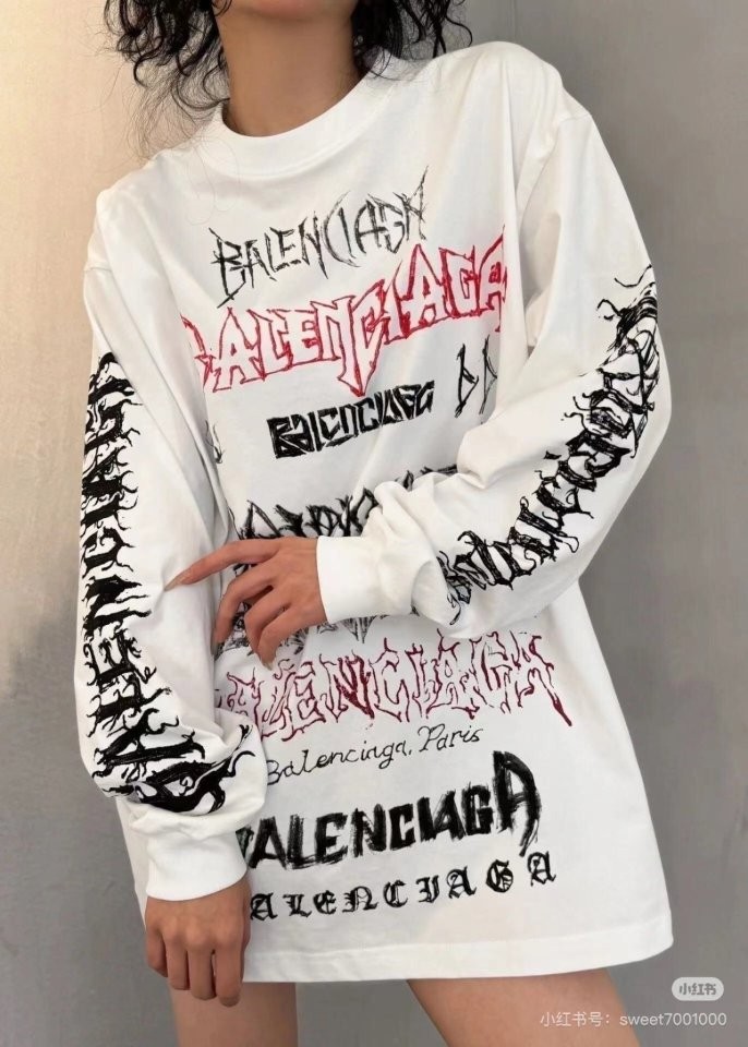 [국내배송]발렌시아가 멀티그래피티 긴팔 워싱 티셔츠