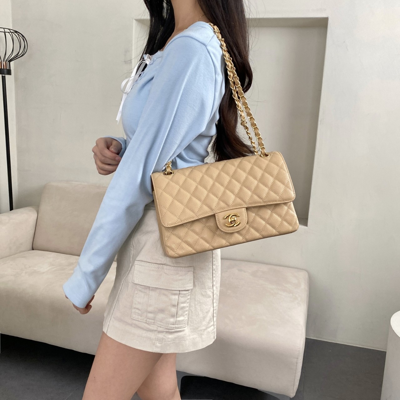 / [국내배송]샤넬 클래식 크로스백 베이지금장 미러급