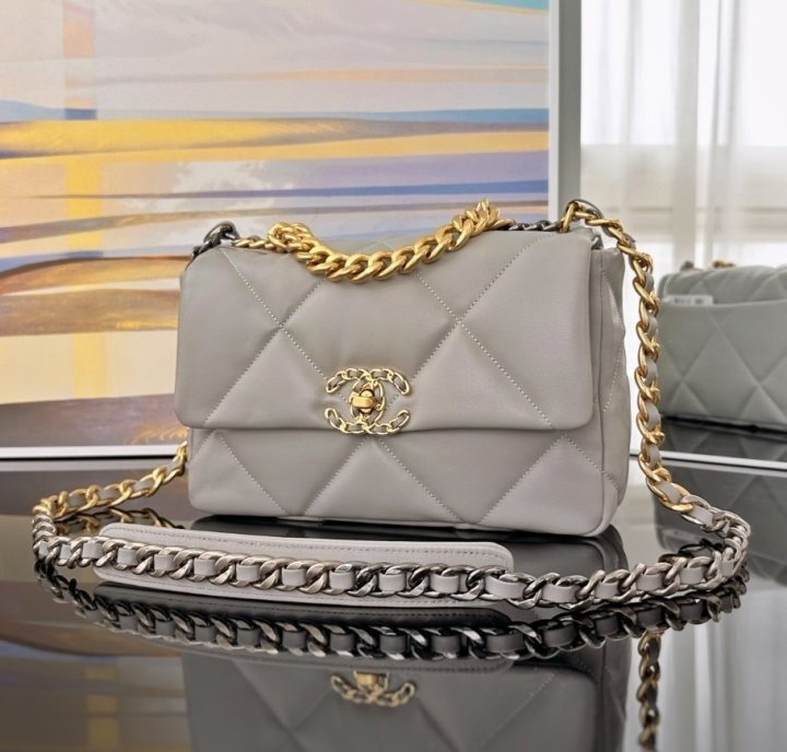 / [국내배송]샤넬 19 플랩백 미듐 그레이 금장 AS1160