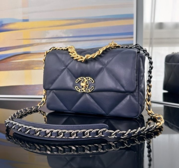 / [국내배송]샤넬 19 플랩백 미듐 네이비 금장 AS1160