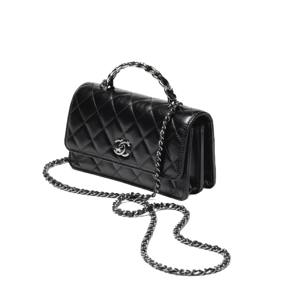 [프리미엄/해외배송]샤넬 WOC 체인 탑핸들 더블 플랩 백(블랙/은장/카프스킨)
